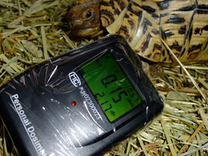 なんだ?っと見ているヒョウモンリクガメのパンちゃん。大丈夫だったよ!よかったね。っといいつつこの数値、このガイガーカウンターあんま精度よくないのかなんなのか…。