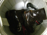 ブーツとスニーカーを洗濯機にブチ込んで洗ってます。洗濯機に耐えれそうな靴だなっと判断したら洗濯機で洗っちゃいます。フローラルの香りタップリの柔軟剤を入れてさ。