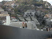 先日見に行った戦艦三笠と戦艦大和を見比べて見ようと、映画、男達のヤマトの撮影で使用され、広島県尾道市に原寸大で再現された戦艦大和を、2006年1月に見に行った時の写真を引っ張り出してみました。 見に行った当時、えらい大きくて大砲だとか沢山ついてて迫力があって感動したんだけど、やはり写真で見直すとスゲ!対戦闘機を想定してるから大砲の数が凄い!そんな大和を見たので三笠を見に行った時はアレ、大砲の数がこんだけしかないの?っという印象でした。三笠と大和は40年程も時代が違うから当たり前なんだけどさ。 世界最大の戦艦なだけあって大和は凄かったです。(舞台セットだけど)
