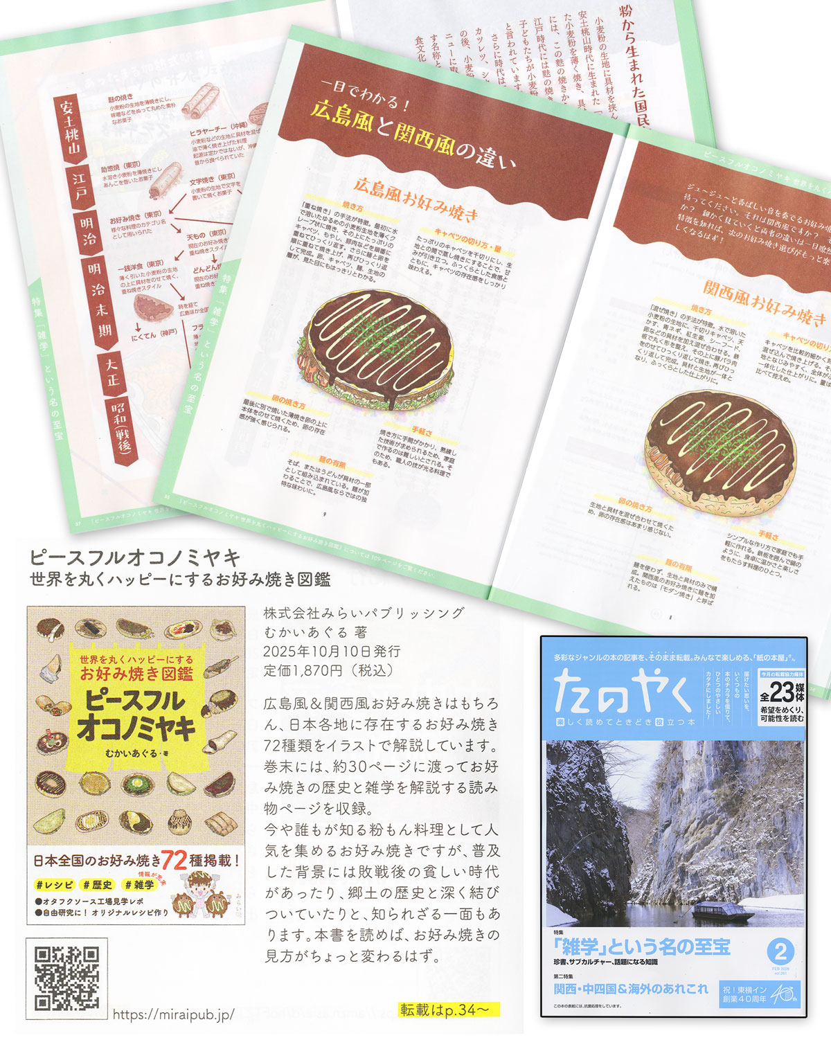 私の著書『ピースフルオコノミヤキ 〜』が、東横INNのホテル客室専用誌「たのやく2月号」に取り上げていただきました!